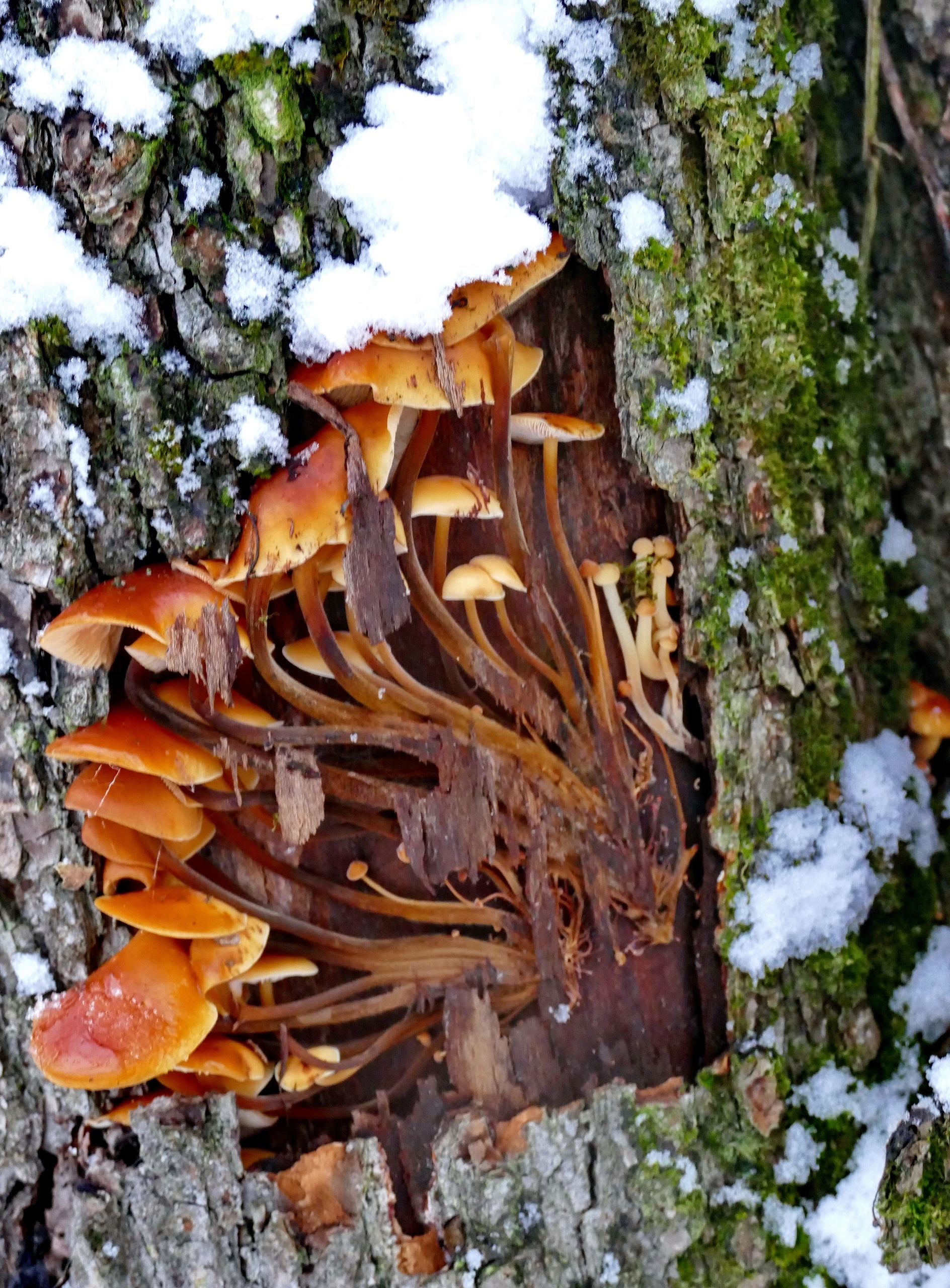 В лесах есть съедобные грибы даже сейчас! Вот только в эти выходные заядлые грибники, знатоки местной природы, экскурсоводы, авторы множества книг и статей, создатели проекта «Регионавтика» — Татьяна Хмельник и Александр Потравнов — набрали корзинку вешенок, зеленушек, серых рядовок и фламмулины, известной в народе как зимний опёнок, это не слишком популярный, но очень вкусный гриб. И пусть корзинка была не очень велика, но для середины ноября это отличный урожай!
